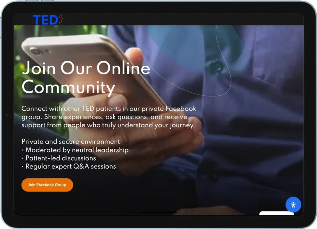 At Esperity, we believe in the power of shared experiences and community support, especially when navigating a health journey. That’s why we are proud to introduce TEDCOM, a new online community specifically for individuals living with Thyroid Eye Disease (TED).